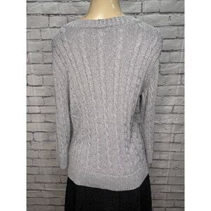 Talbots Womens Silver Cable Knit Button Front Long Sleeve Cardigan Sweater XL