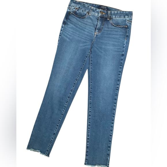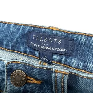 Talbots Women's Simply Flattering 5 Pocket Blue Jeans Frayed Hem Size 4 EUC
