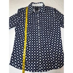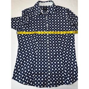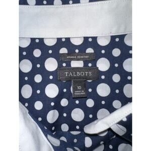 Talbots Women's Size 10 Blue White Polka Dot Button Up Shirt Blouse Top Wrinkle Resistant Long Sleeve Preowned Like New No Stains or Flaws