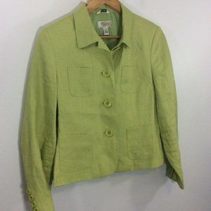 Talbots Womens Size 10 Petite Green Irish Linen Lined Blazer