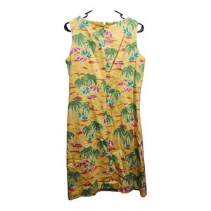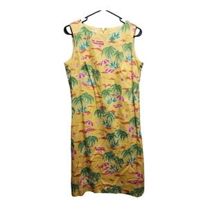 🔥 Talbots Women's Size 10 Yellow Tropical Palm Tree Sheath Dress – Sleeveless B