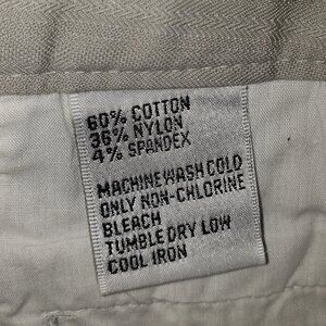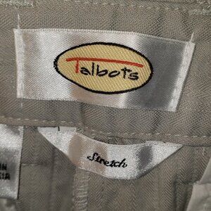 These Talbots gray stretch pants offer a comfortable and stylish option for various occasions. The neutral color and subtle textured striped pattern make them versatile for both casual and slightly dressier looks. The stretch fabric ensures a comfortable fit and ease of movement. Perfect for adding a touch of sophistication to your wardrobe.