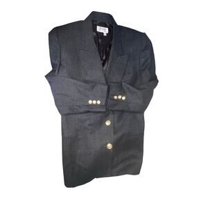 Talbots Women’s Size 12P Gray Wool Gold Button Mid Length Y2K Vintage Blazer USA