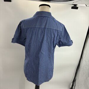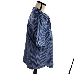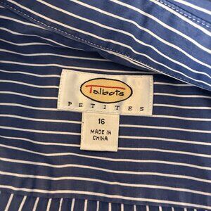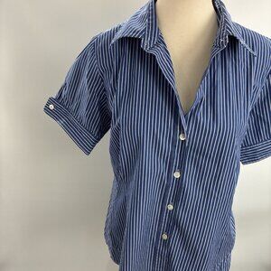 Talbots Womens Size 16P Shirt Blue White Striped Button Front Short Sleeve Top
