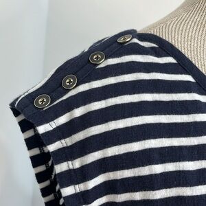 Talbots Women's Size 1X p T Shirt Shift Dress Belted Knit Navy Blue Stripes