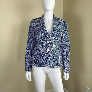 Talbots Womens Size 2 Blue Pasiley Cotton Double Breasted Blazer Jacket Nautical