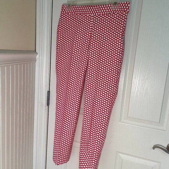 Talbots Womens Size 2 Chatham Straight Leg Side Zip Red/White Ankle Pants