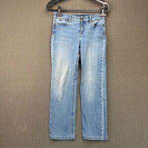 some wear.. Please see photos.. Talbots Womens Size 2P Blue Simply Flattering Straight Leg Jeans