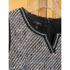 Elevate your wardrobe with this stunning Talbots sheath dress. The dress features a beautiful tweed pattern, sleeveless design, and a flattering split neck V-neckline. It comes in a lovely Pink & Black combination that will make you stand out in any crowd. The dress is perfect for a variety of occasions, including travel, casual outings, formal events, workwear, and business meetings.