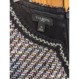 The knee-length dress is made of high-quality tweed fabric that is comfortable and durable. It has a zip closure and is lined for added comfort. The dress is easy to care for and requires dry cleaning only. This classic piece is a must-have for any fashion-conscious woman, and it's available in petite size 4. Get ready to turn heads and make a statement with this gorgeous Talbots dress.