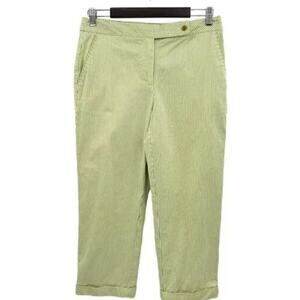 Talbots Women’s Size 4 Lime Green White Striped Cropped Pants Cuffed Crop