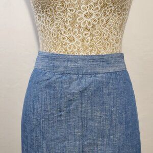 Talbots Women's Size 8 Blue Linen Blend Floral Embroidered Chambray A-Line Side Zip Lined Short Skirt Casual Breathable Lightweight Modern Contemporary Gently Pre-Owned Excellent Condition Reasonable Offers Welcome