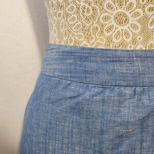 Talbots Women's Size 8 Blue Linen Floral Embroidered Chambray A-Line Short Skirt