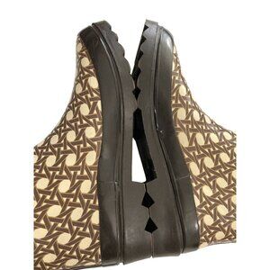 These stylish rain boots from Talbots feature a chic brown geometric pattern, suitable for keeping your feet dry during wet weather. With a waterproof rubber construction, these boots are both functional and fashionable, making them an excellent addition to any wardrobe.