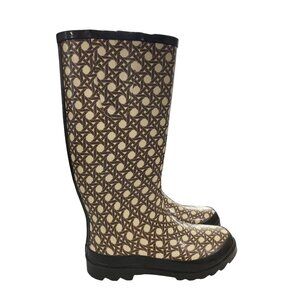 Talbots Women's Size 9 Brown Patterned Waterproof Rubber Rain Boots shoes