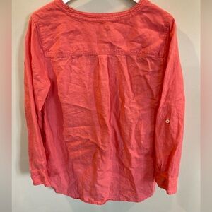 Talbots Women’s Size M Orange Linen Roll Tab Popover Button Detail Side Seams