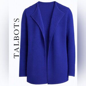Talbots Women's Size S Blue Rib Knit Long Sleeve Semi Sheer Open Front Cardigan