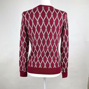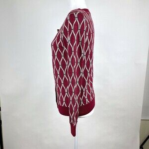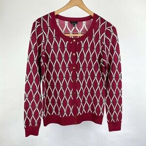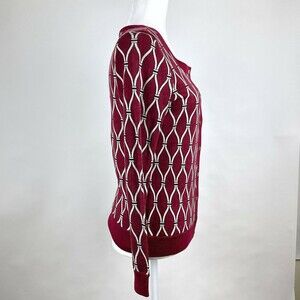 Talbots Women's Size S Merino Wool Red Geometric Ogee-Like Pattern Cardigan Button Sweater.