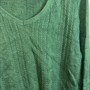 Talbots Women’s Size Small Olive Green Cable Knit V-Neck Sweater
