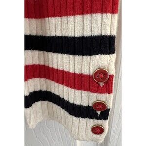 Talbots Womens Size X Red White French Stripe Puff Sleeve Crewneck Sweater.