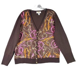 Talbots Women’s Size XL Cardigan Sweater Brown Chainlink Silk Long Sleeve
