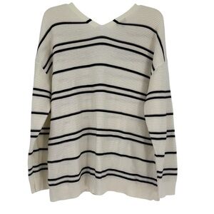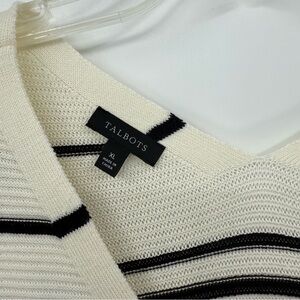 Talbots Women’s Size XL Cream Black Stripe Pullover Long Sleeve Tunic Sweater