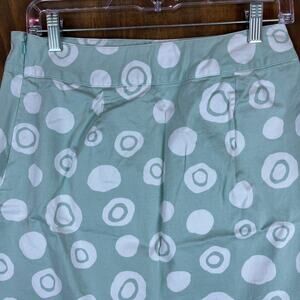 Talbots Womens Skirt Green White Polka Dot Pattern A-Line Stretch 8 Petite