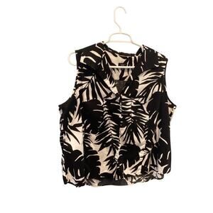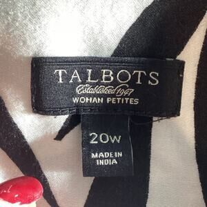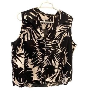 Talbots Womens Sleeveless Button Up Shirt Plus Size 20W Petite Black White Beach