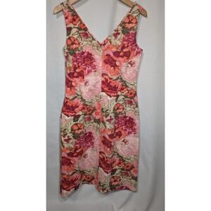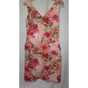 Talbots Womens Sleeveless Pockets Beige Pink Khaki Floral Sheath Dress Sz 4
