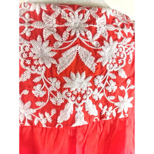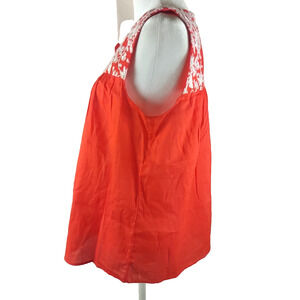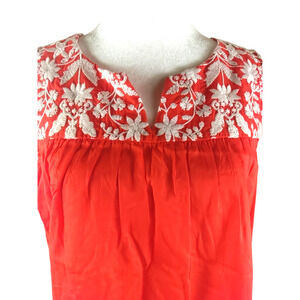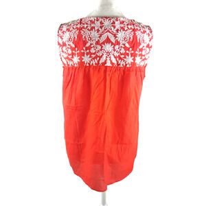 Talbot's Women's Sleeveless Shirt Size Small Embroidery Red/OrangeWhite Cotton