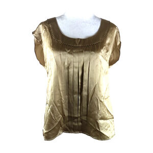 Talbot's Women's Sleeveless Top Size 10 Tan/Gold 100% Silk Beaded Pleats