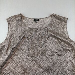 Talbots Womens Sleveless Shell Blouse Size 20W Brown White Ruffle Plus