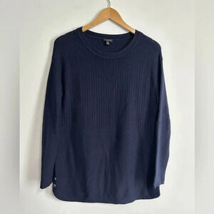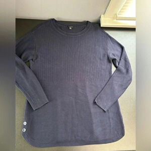 Talbots Women’s Small Blue Semi Ribbed Pullover Lightweight Button Hem Business