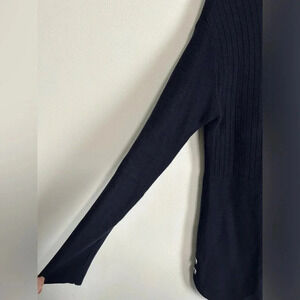 This is a cute Career type lightweight sweater/pullover top, the top half is ribbed the bottom is solid with a rounded hem and button accents on the sides