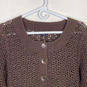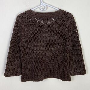 Talbots Women's Small Hand Knit Brown Cropped Cardigan Cottagecore Fisherman