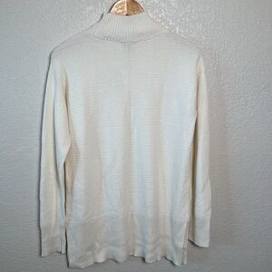 Talbots Women's Small Ivory Sweater Mock Neck Textured Side Slits Warm NWT