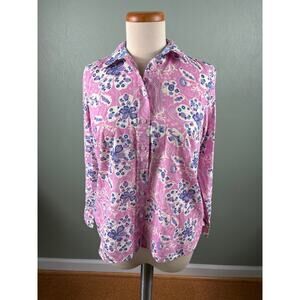 Talbots Women's Small Petite Pink Floral Cute Chic Button Up Long Sleeve Shirt