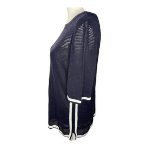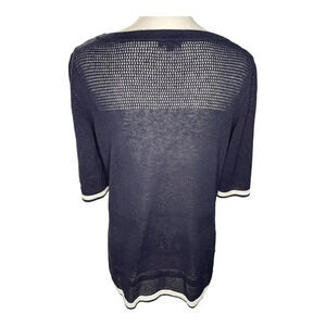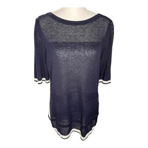 Talbots Women's Small Short Sleeve Linen Blend Navy Lightweight Knit Top