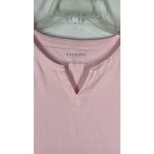 Talbots Women's Solid Cotton Split Neck Short Sleeve T-Shirt Pink Size Medium