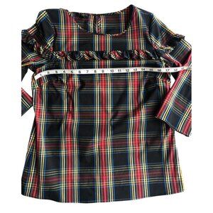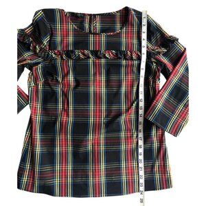 Talbots Womens Stewart Plaid Poplin Ruffle Topβ Petite SP Holidays NWT $90