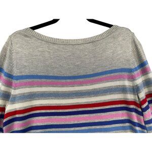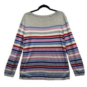 Talbots Womens Striped Button-Detail Sweater Medium Gray Pink Blue