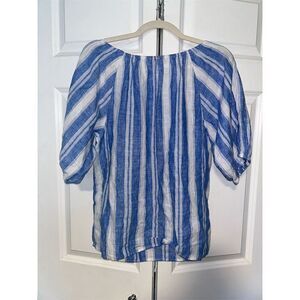 Talbots Women's Striped Linen Blouse V-Neck 3/4 Sleeve Size S
