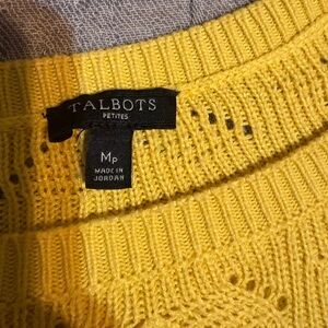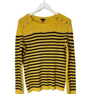 Talbots Women’s Striped Sweater Yellow Navy Gold Buttons Pointelle Neck M