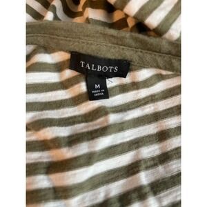 Talbots Women's Striped Tie Waist Knit Dress Olive Green White Size M