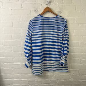 Talbots Women's Striped Tunic Top Long Sleeve Split Neck Blue White Size Small
