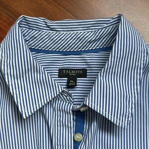Talbots Women’s Stripped Button Down Collared Shirt Size Medium Petite