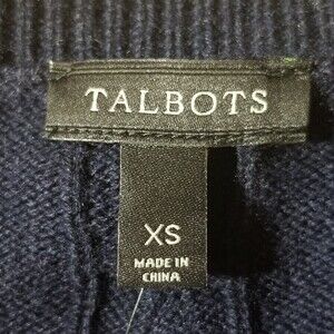 Talbots Womens Sweater Lambswool Blend Cable Knit Pullover Dark Navy Blue XS NWT