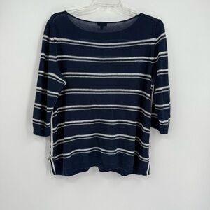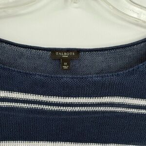 Talbots Women’s Sweater Linen Size 1X Blue Stripe Pullover Long Sleeve Tunic