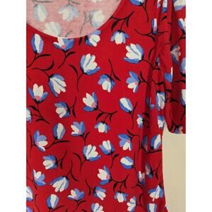 Talbots Womens Sweater Red Blue Floral Lightweight Puff Short Sleeve Size Large