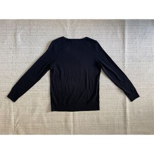 Talbots Womens Sweater SP Black 100% Merino Wool V-Neck Classic Minimalist Chic